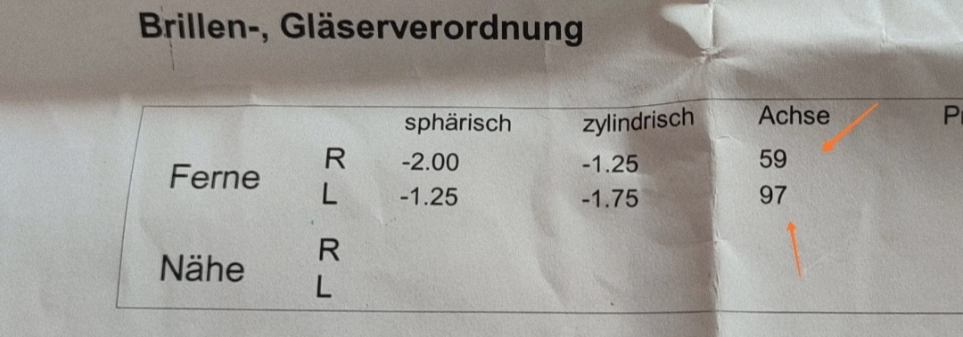 2 Stunden später, habe ich dann meine Brille beim Optiker abgeholt. Und musste feststellen, dass ich keine klare Sicht hatte. Anfangs dachte ich, evtl Gewöhnung aber bei den gleichen Gläser bzw stärke ? Ich war skeptisch und habe dann von eine anderen Optiker die Werte die in der Brille eingearbeitet würde auslesen lassen.