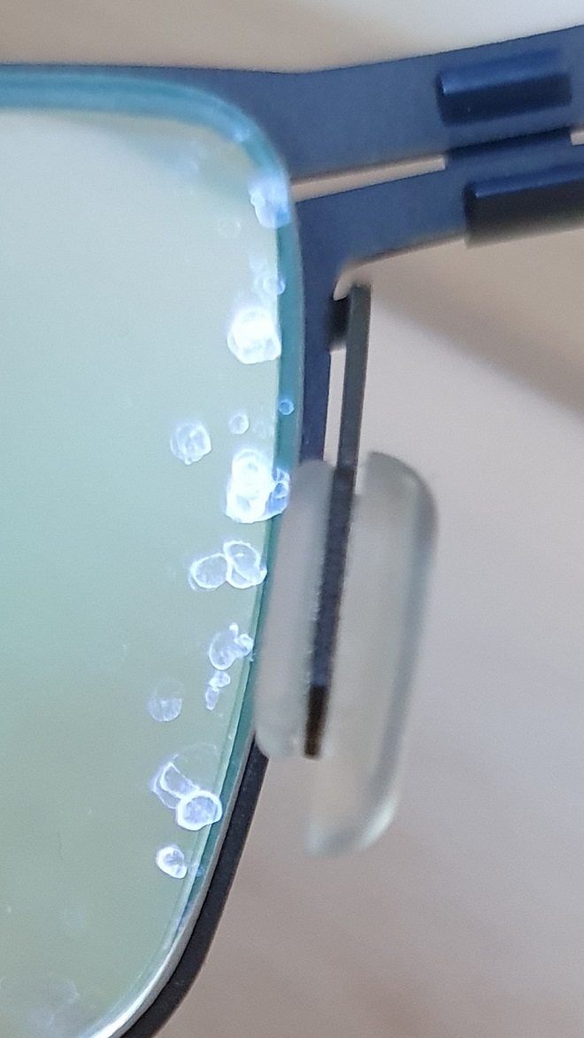 Reinige meine Brille immer unter dem Wasserhahn und einen Tropfen Geschirr Spülmittel und tupfe sie anschließend trocken. Aber wenn ich die Brille entsprechend dem Lichteinfall anschaue, befinden sich an den Rändern diese Flecken, sowohl Innen-,als auch Außen am Rand. Schaut aus wie wenn was eingetrocknet wäre. Kann mir jemand einen Tipp geben, wie ich diese Flecken entfernen kann.habe schon alles probiert, leider erfolglos.