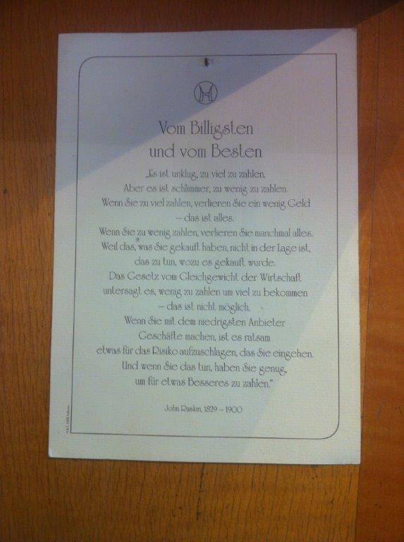 "Es wird sich immer Einer finden lassen, der es noch schlechter und noch billiger macht..." (Zitat von weißichnichtmehr)