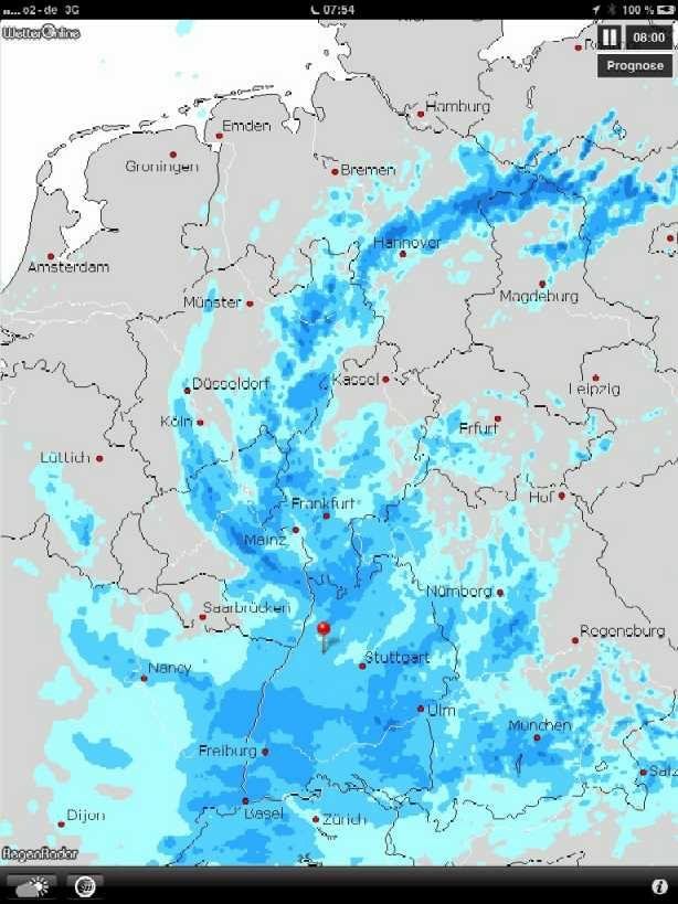 ich nutze übrigens die wetteronline app regenradar, diese gibt eine stunde vorher und danach an und stimmt exakt mit dem geschehen, fast erschreckend, bis auf die minute.